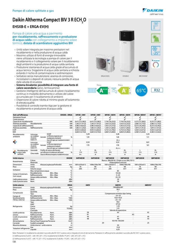 Note: Prestazioni in riscaldamento calcolate in accordo alla EN 14511 a pieno carico integrato di ciclo di sbrinamento. Prestazioni in ra