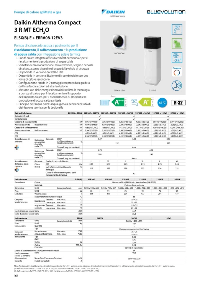 Note: Prestazioni in riscaldamento calcolate in accordo alla EN 14511 a pieno carico integrato di ciclo di sbrinamento. Prestazioni in ra