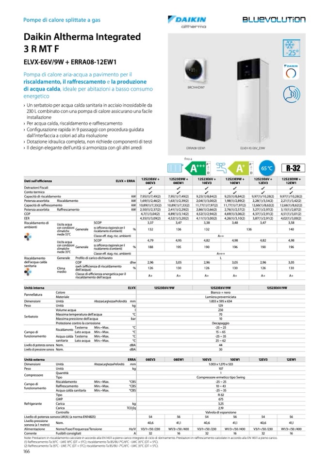 Note: Prestazioni in riscaldamento calcolate in accordo alla EN 14511 a pieno carico integrato di ciclo di sbrinamento. Prestazioni in ra