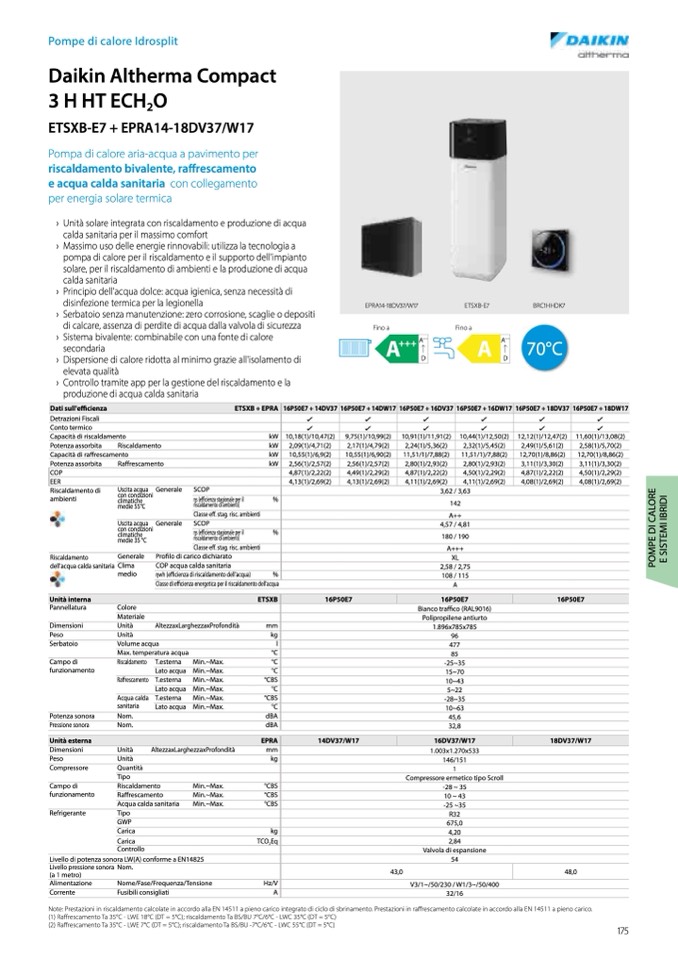 Note: Prestazioni in riscaldamento calcolate in accordo alla EN 14511 a pieno carico integrato di ciclo di sbrinamento. Prestazioni in ra