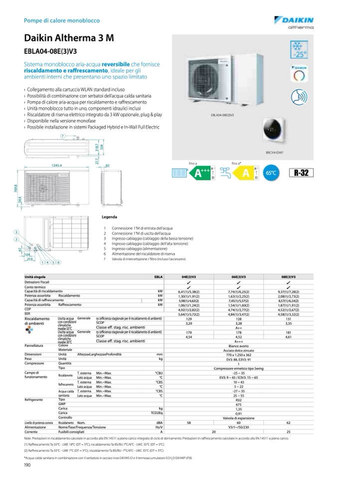Note: Prestazioni in riscaldamento calcolate in accordo alla EN 14511 a pieno carico integrato di ciclo di sbrinamento. Prestazioni in ra