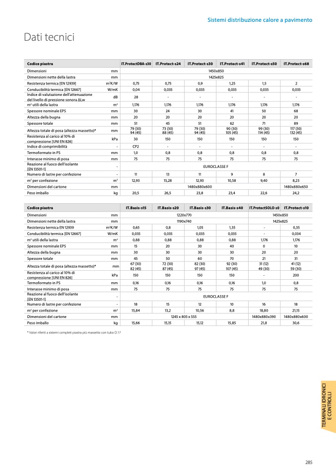 * Valori riferiti a sistemi completi piastra più massetto con tubo D.17