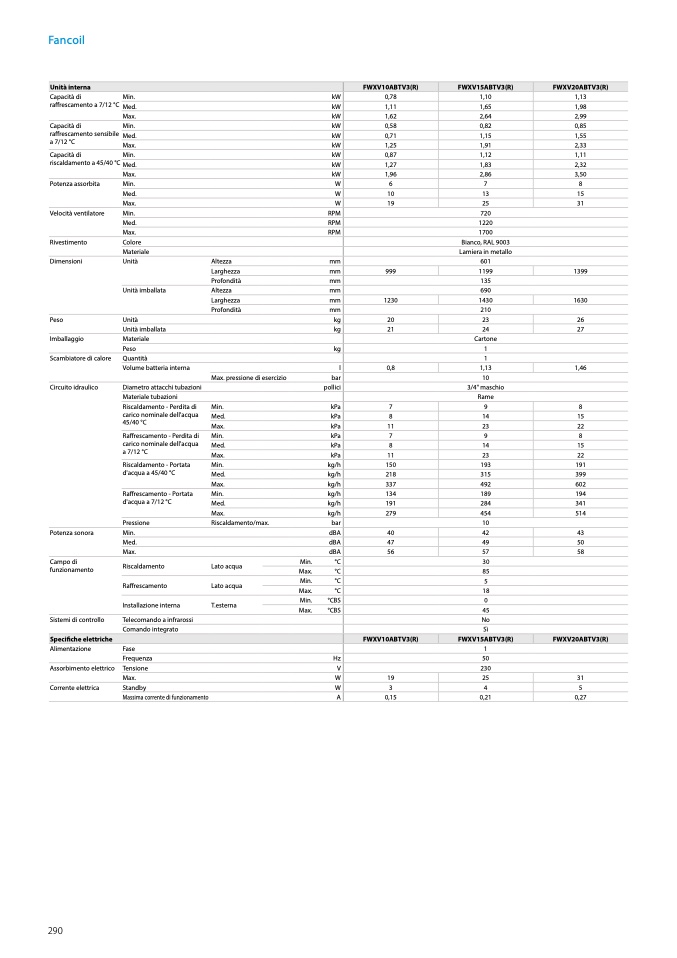 ffrescamento a 7/12 °C Med.