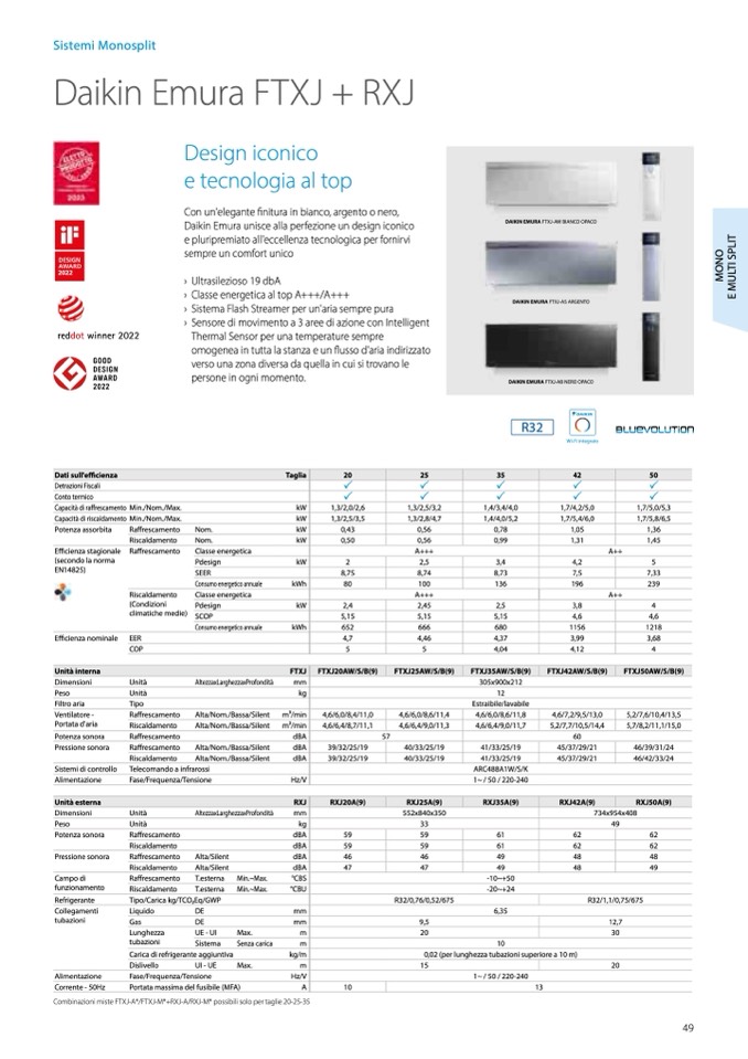Combinazioni miste FTXJ-A*/FTXJ-M*+RXJ-A/RXJ-M* possibili solo per taglie 20-25-35