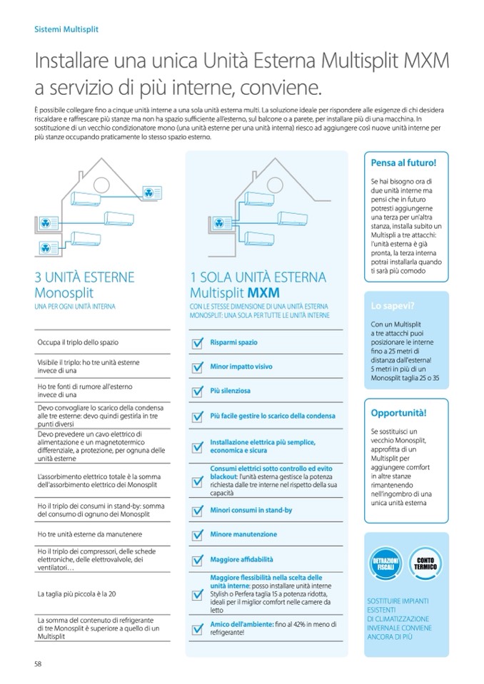 à interne a una sola unità esterna multi. La soluzione ideale per rispondere alle esigenze di chi desidera