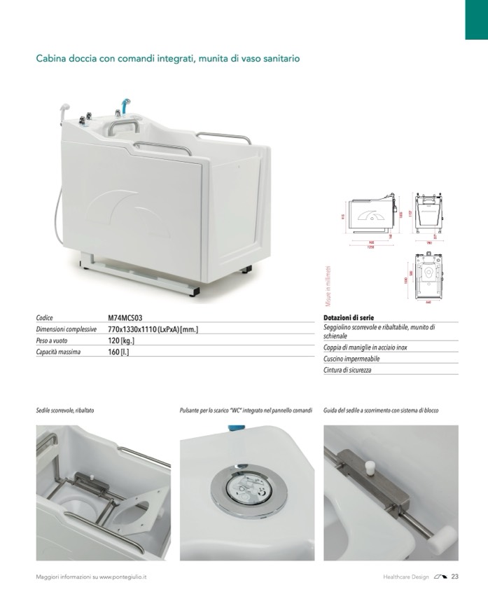 Pulsante per lo scarico “WC” integrato nel pannello comandi