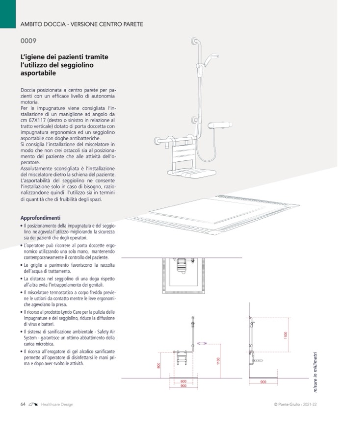 Doccia posizionata a centro parete per pa-