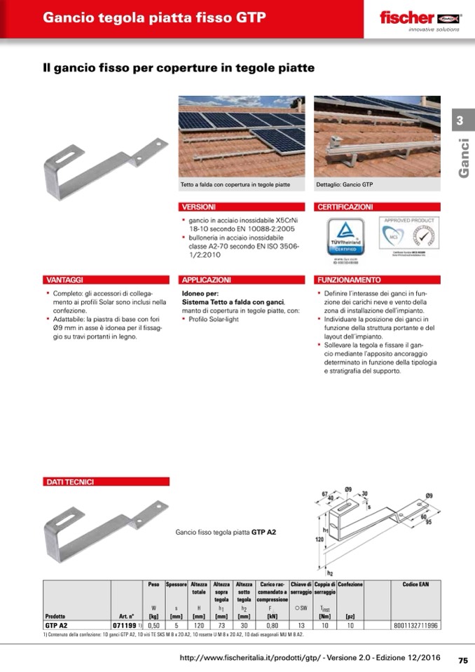 Gancio▪fisso▪tegola▪piatta▪GTP A2