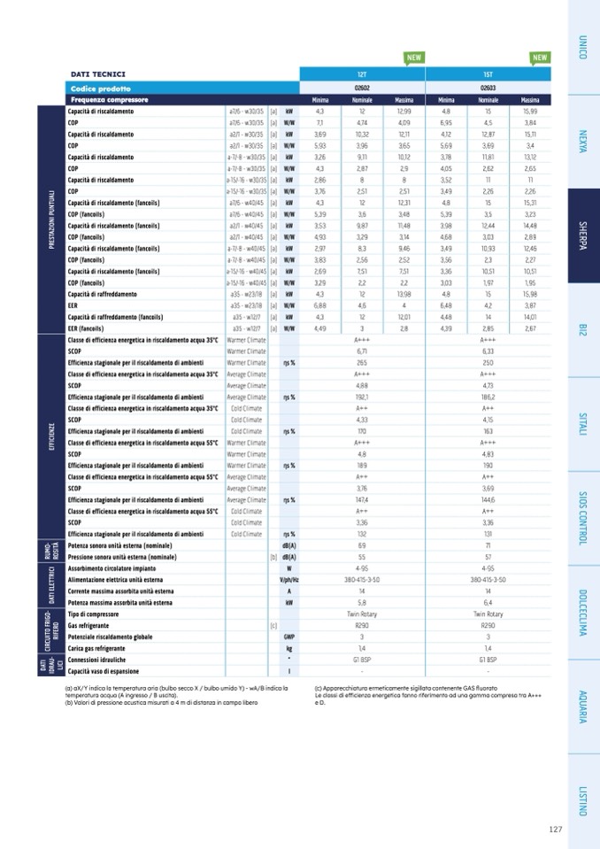 (a) aX/Y indica la temperatura aria (bulbo secco X / bulbo umido Y) - wA/B indica la