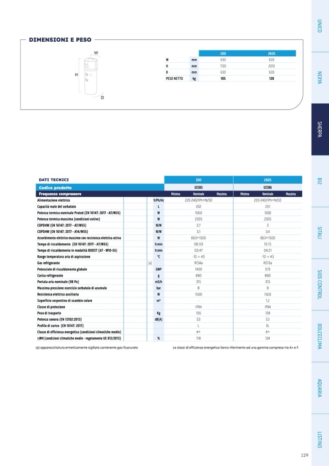 fficienza energetica fanno riferimento ad una gamma compresa tra A+ e F