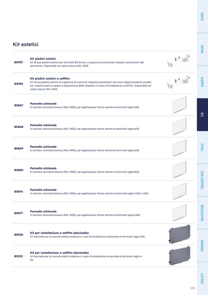 In lamiera verniciata bianco (RAL 9003), per applicazione fronte vetrata di terminali taglie 1100 e 1400.