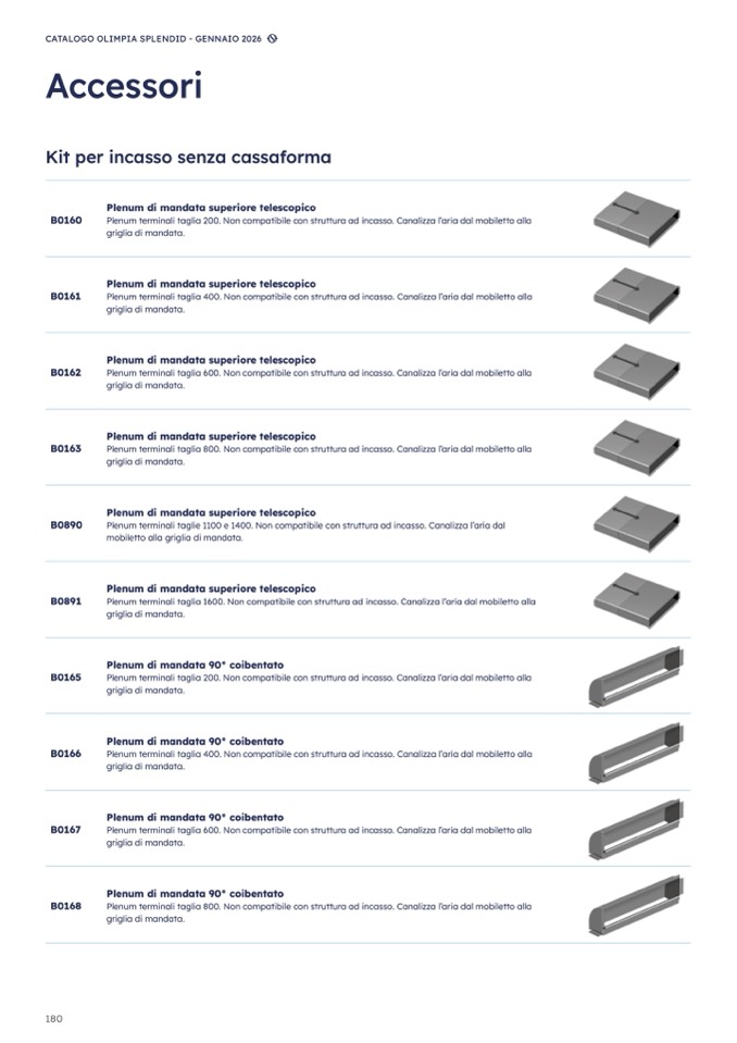 Plenum terminali taglia 1600. Non compatibile con struttura ad incasso. Canalizza l’aria dal mobiletto alla