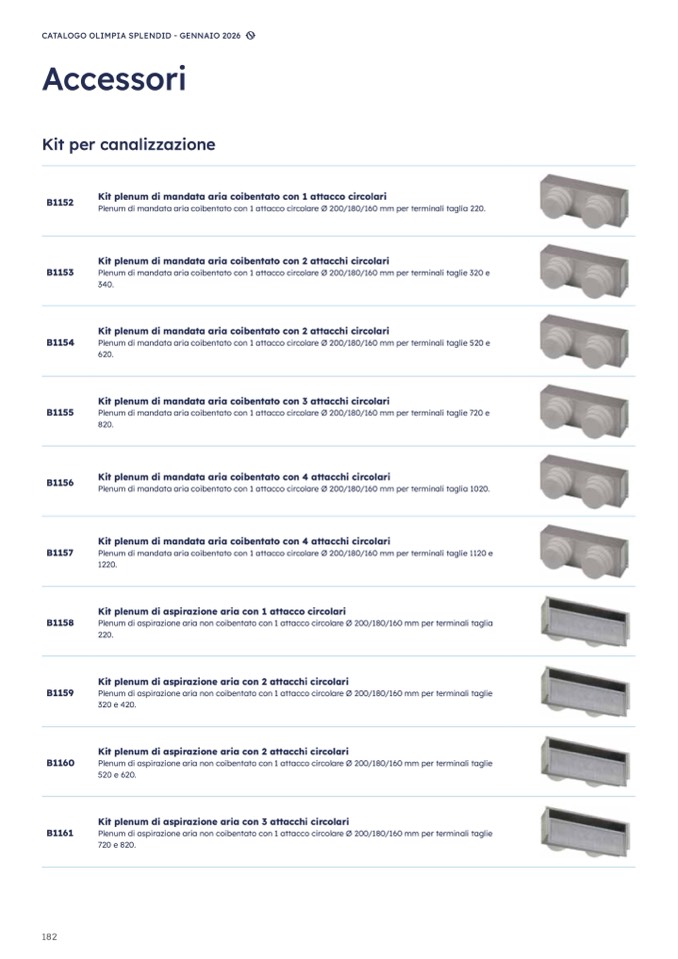 Plenum di aspirazione aria non coibentato con 1 attacco circolare Ø 200/180/160 mm per terminali taglia
