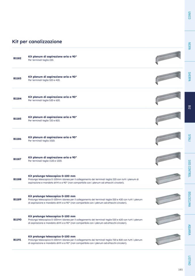 Prolunga telescopica 0-100mm idonea per il collegamento dei terminali taglia 220 con tutti i plenum di