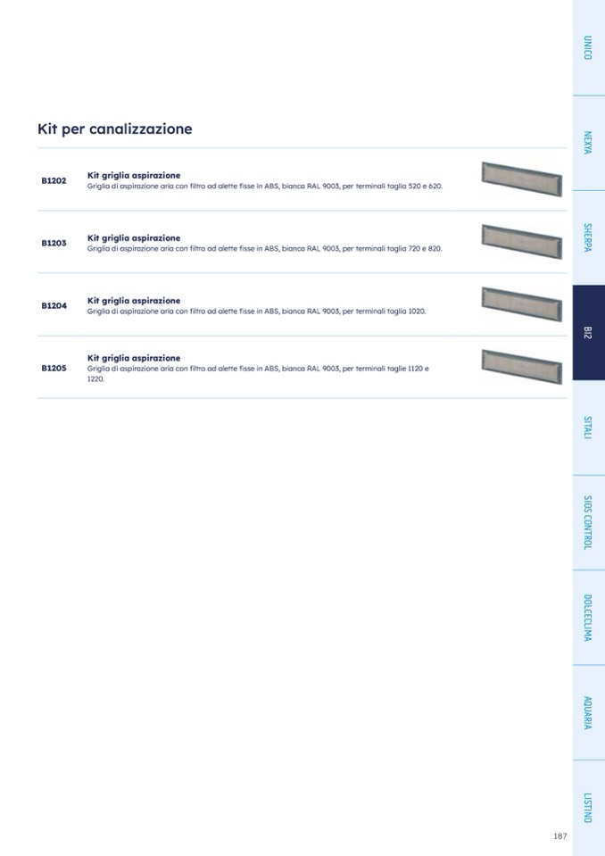 Griglia di aspirazione aria con filtro ad alette fisse in ABS, bianca RAL 9003, per terminali taglia 720 e 820