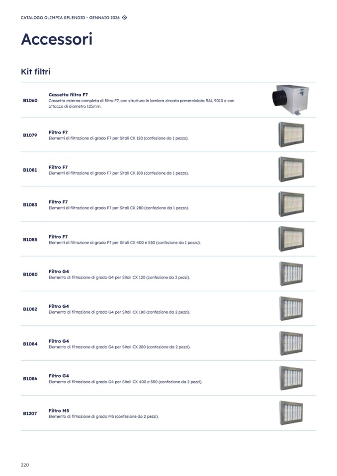 Elementi di filtrazione di grado F7 per Sitali CX 120 (confezione da 1 pezzo).