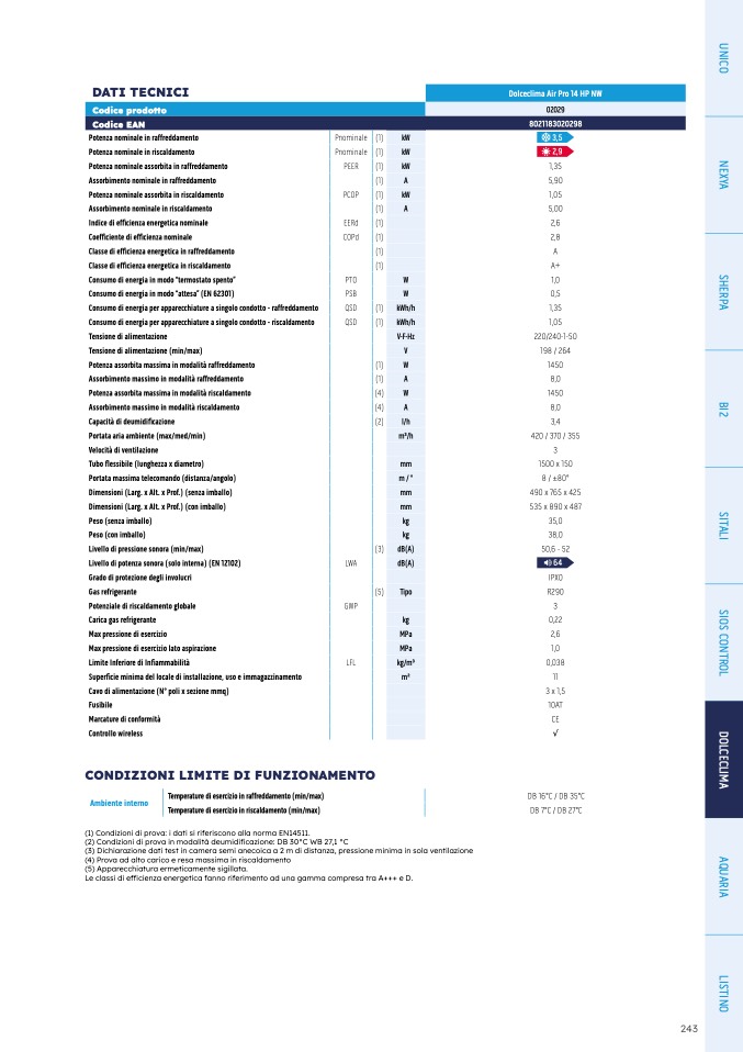 (1) Condizioni di prova: i dati si riferiscono alla norma EN14511.