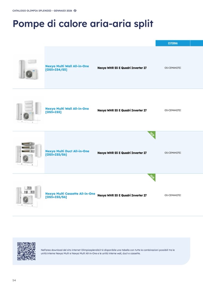 unità interne Nexya Multi e Nexya Multi All-in-One e le unità interne wall, duct e cassette.