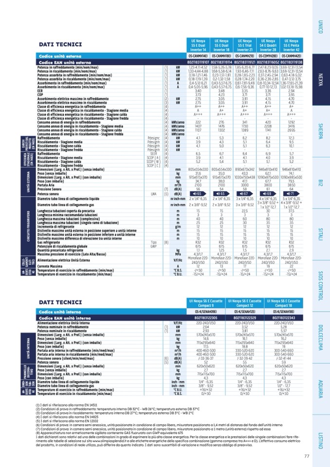 (3) Condizioni di prova in riscaldamento: temperatura interna DB 27°C; temperatura esterna DB 3°C - WB 2°