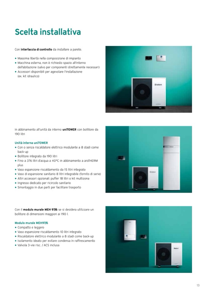 In abbinamento all’unità da interno uniTOWER con bollitore da
