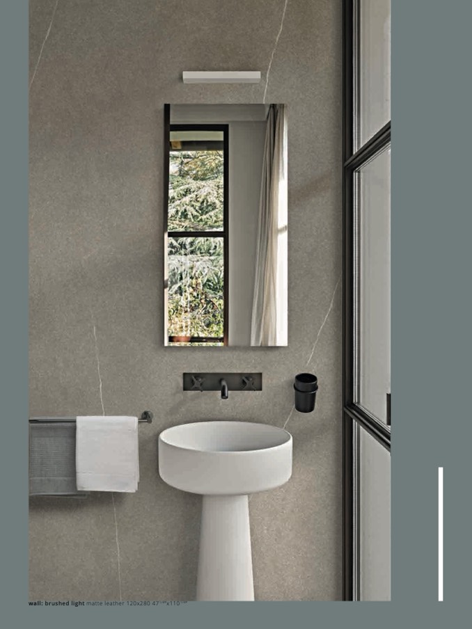 wall: brushed light matte leather 120x280 471/4”x1101/4”