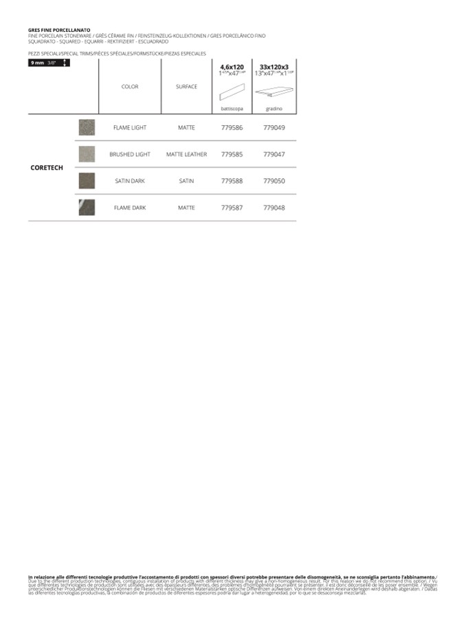 Due to the different production technologies, contiguous installation of products with different thickness may give a non-homogeneous result. For this reason we do not recommend this option. / V