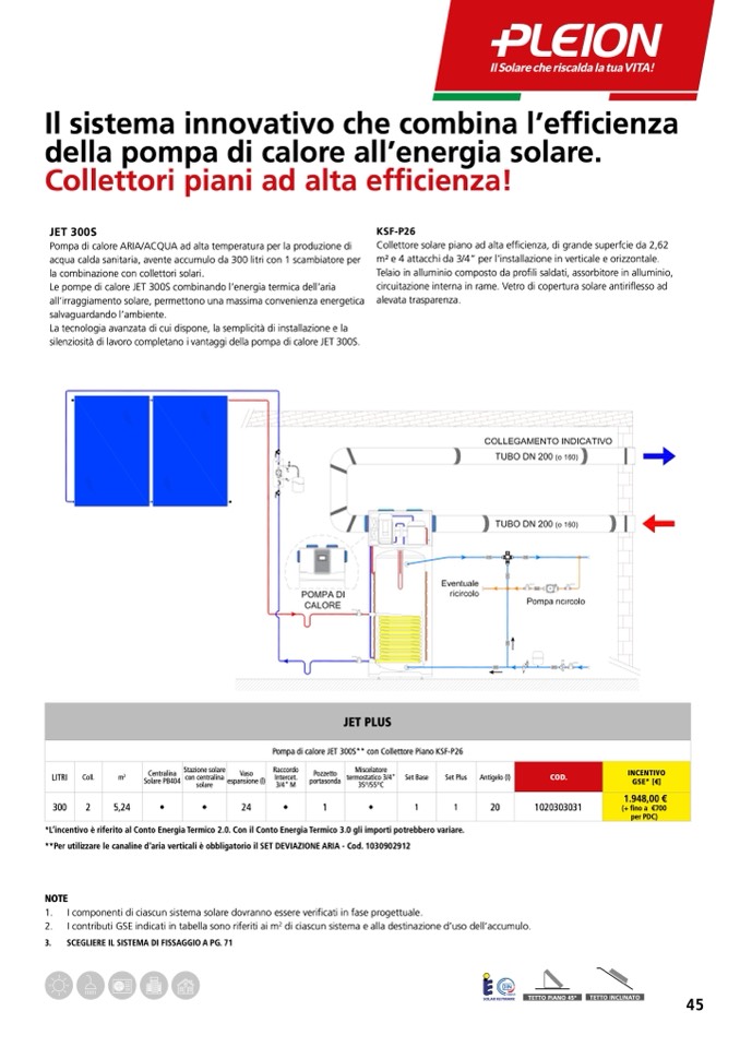 Pompa di calore JET 300S** con Collettore Piano KSF-P26