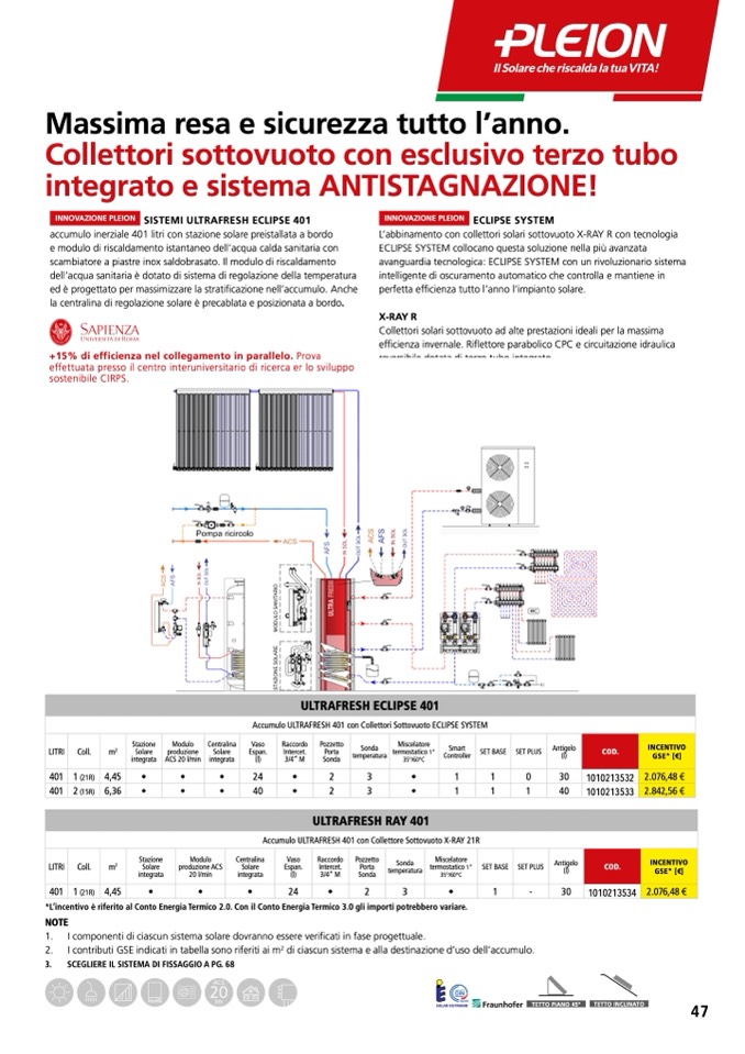 L’abbinamento con collettori solari sottovuoto X-RAY R con tecnologia