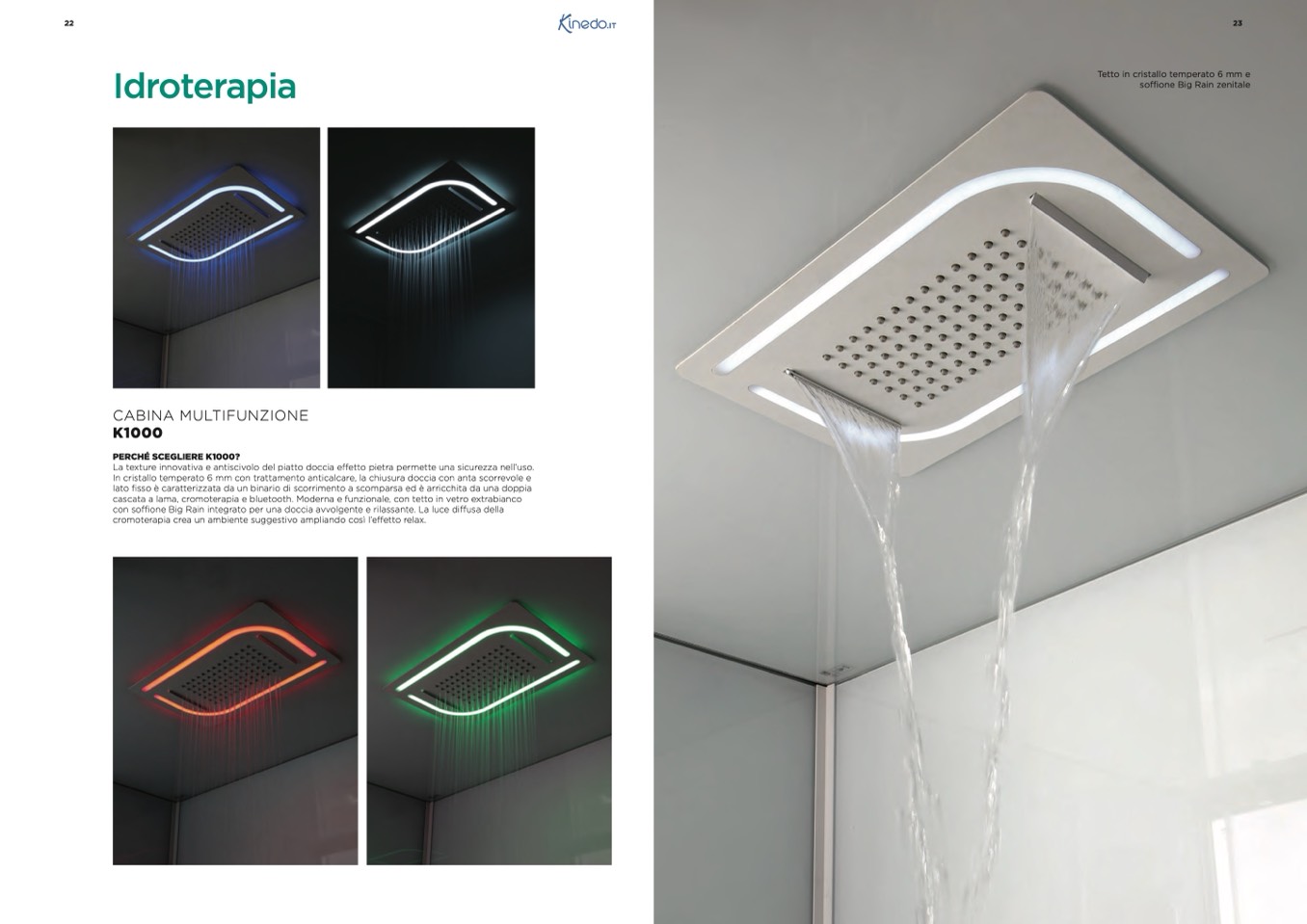 cascata a lama, cromoterapia e bluetooth. Moderna e funzionale, con tetto in vetro extrabianco