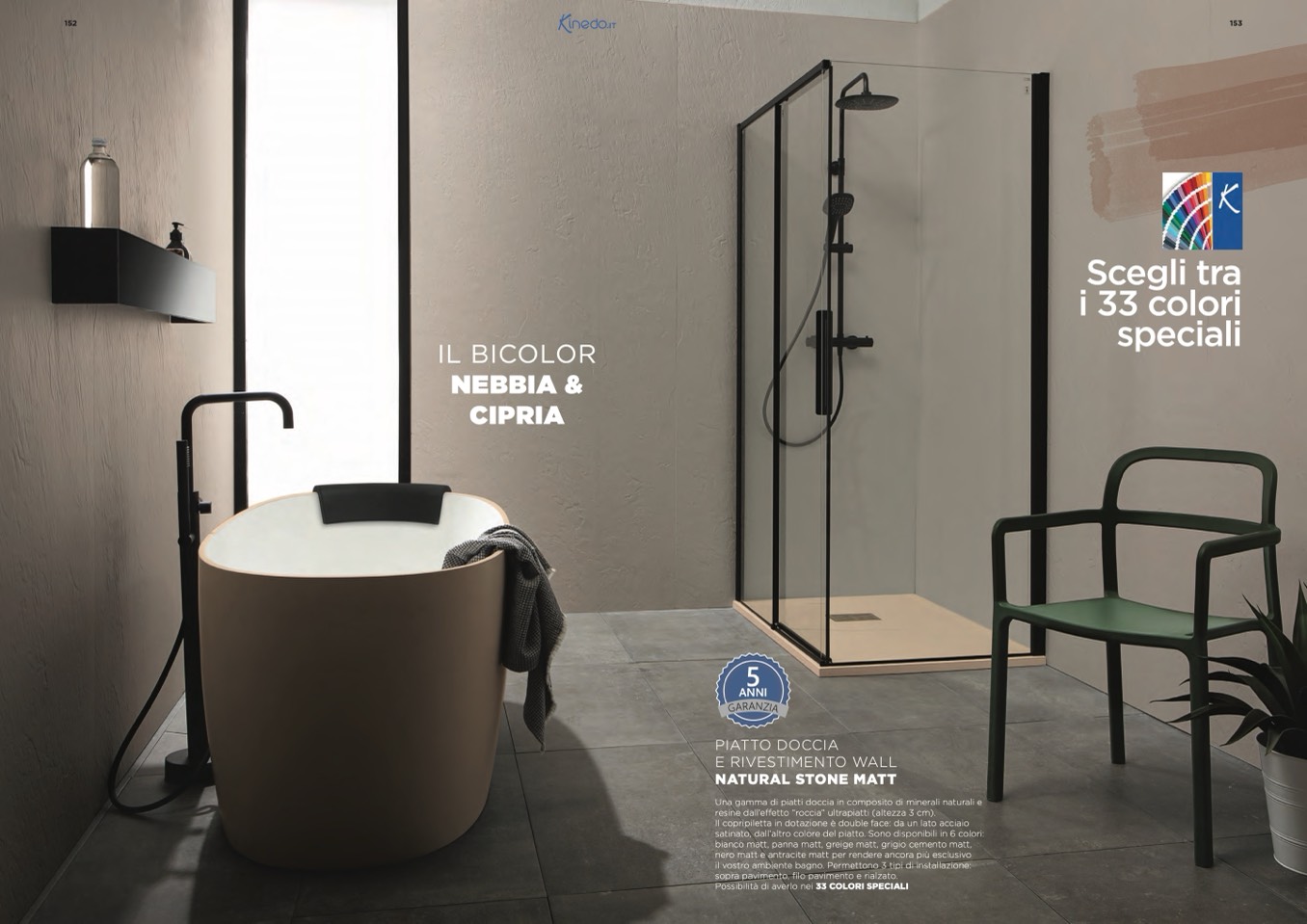 Una gamma di piatti doccia in composito di minerali naturali e