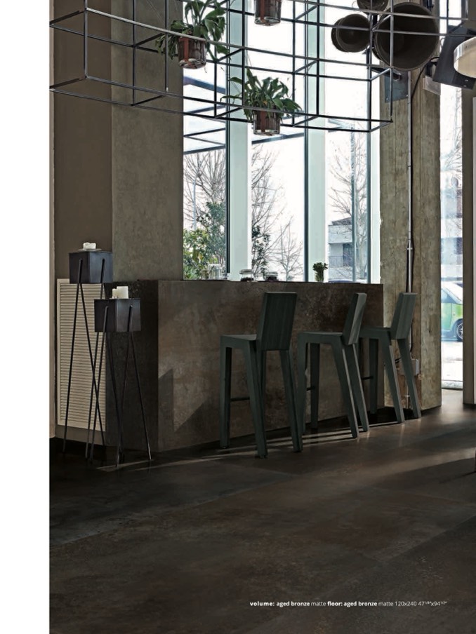 volume: aged bronze matte floor: aged bronze matte 120x240 471/4”x941/2”