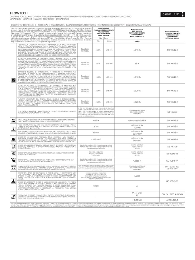CARATTERISTICHE TECNICHE - TECHNICAL CHARACTERISTICS - CARACTERISTIQUES TECHNIQUES - TECHNISCHE EIGENSCHAFTEN - CARACTERÍSTICAS TÉCNICAS