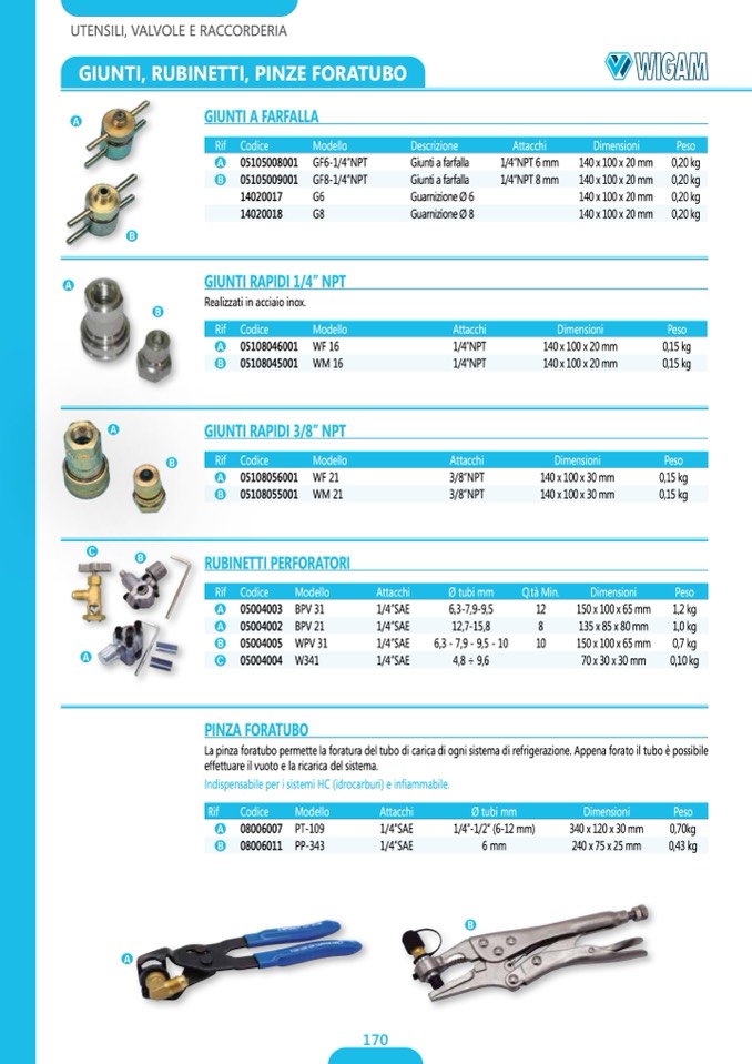 La pinza foratubo permette la foratura del tubo di carica di ogni sistema di refrigerazione. Appena forato il tubo è possibile