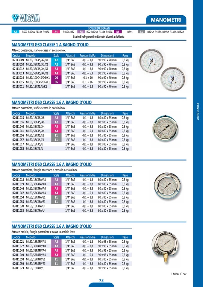 Scale di refrigeranti e diametri diversi a richiesta