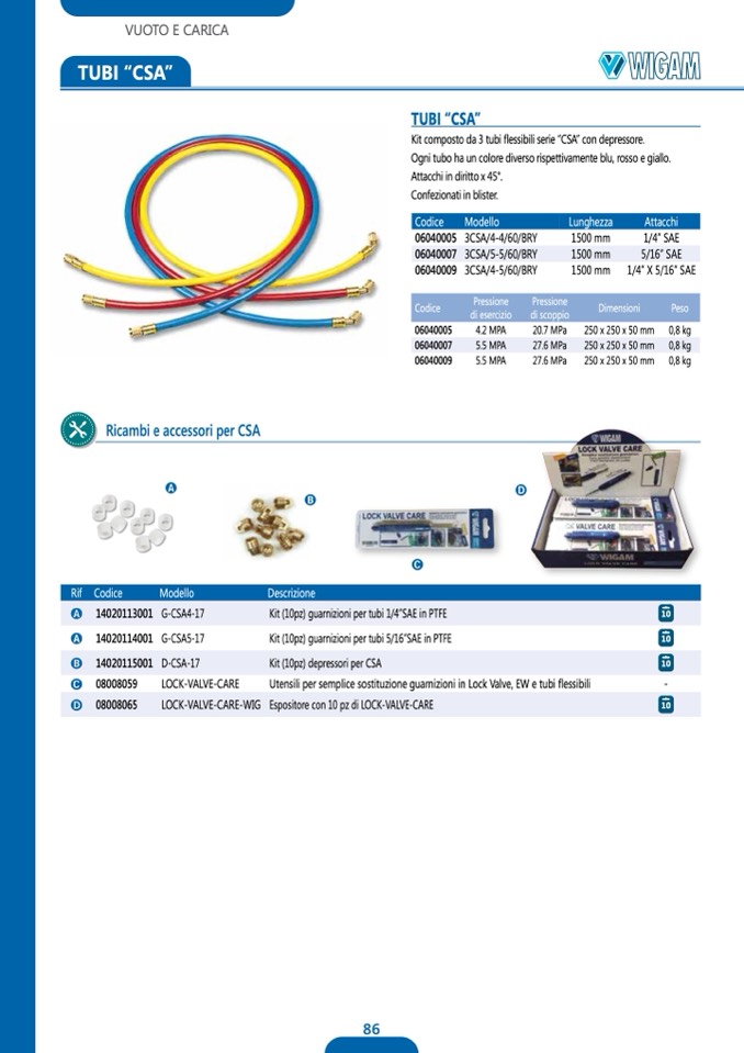 Kit composto da 3 tubi flessibili serie “CSA” con depressore.