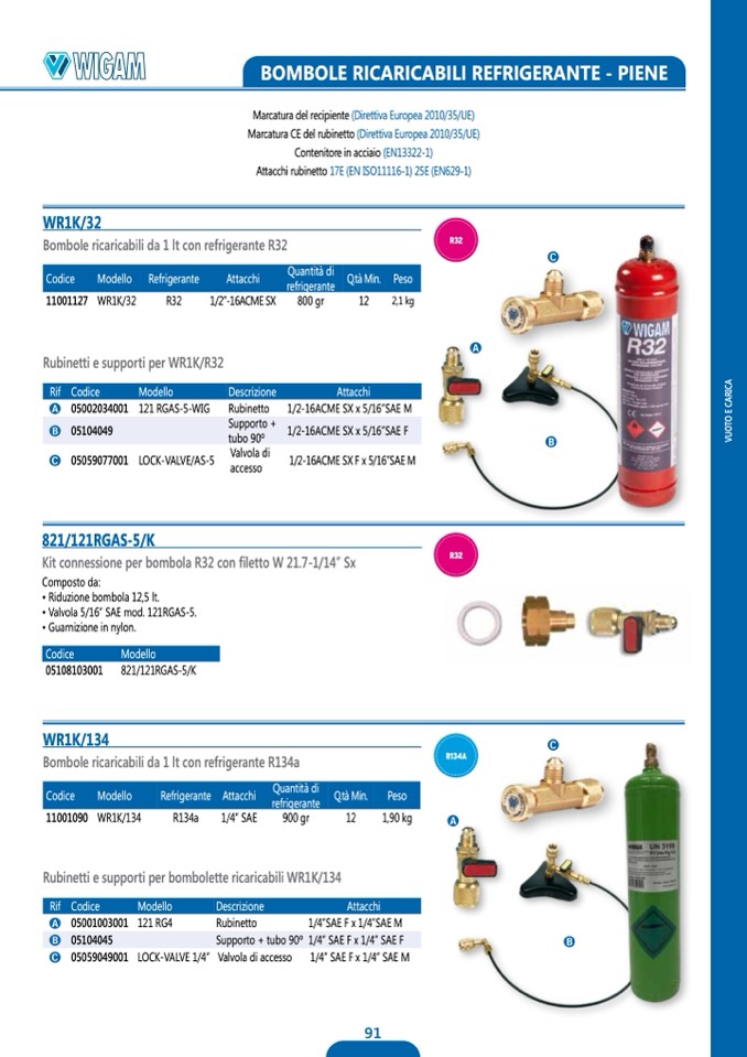 Attacchi rubinetto 17E (EN ISO11116-1) 25E (EN629-1)
