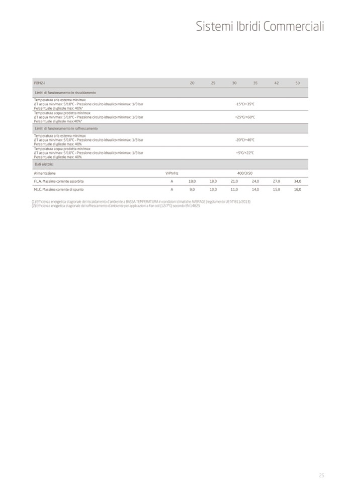 (2) Efficienza enegetica stagionale del raffrescamento d'ambiente per applicazioni a Fan coil (12/7°C) secondo EN 14825