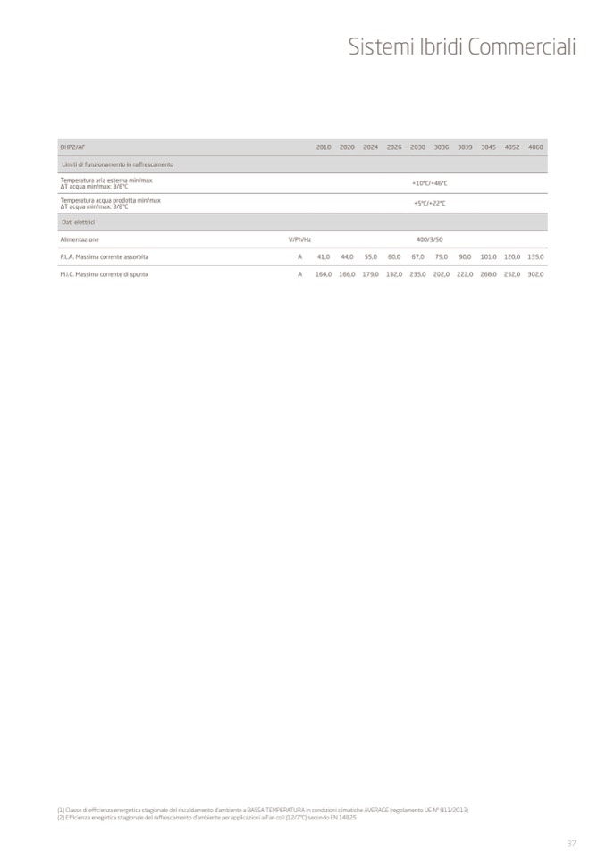(2) Efficienza enegetica stagionale del raffrescamento d'ambiente per applicazioni a Fan coil (12/7°C) secondo EN 14825