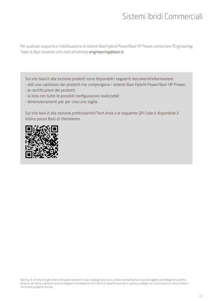 Per qualsiasi supporto e individuazione di sistemi Baxi Hybrid Power/Baxi HP Power, contattare l’Engineering