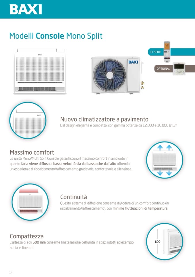 Le unità Mono/Multi Split Console garantiscono il massimo comfort in ambiente in
