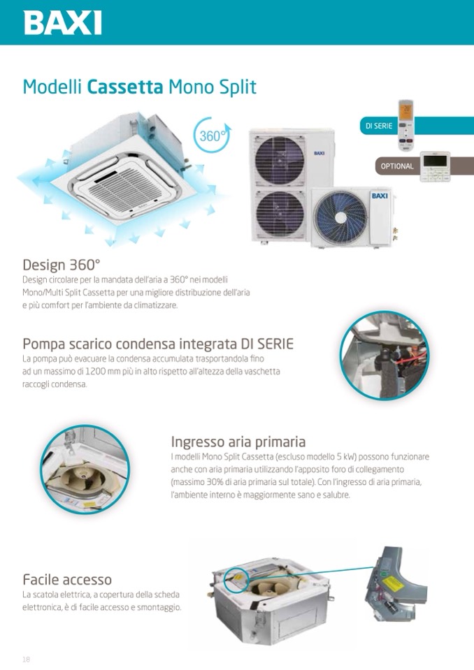 I modelli Mono Split Cassetta (escluso modello 5 kW) possono funzionare