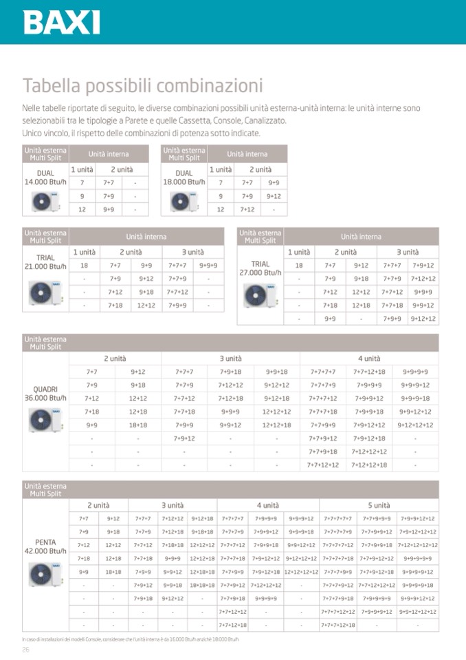 In caso di installazioni dei modelli Console, considerare che l'unità interna è da 16.000 Btu/h anzichè 18.000 Btu/h