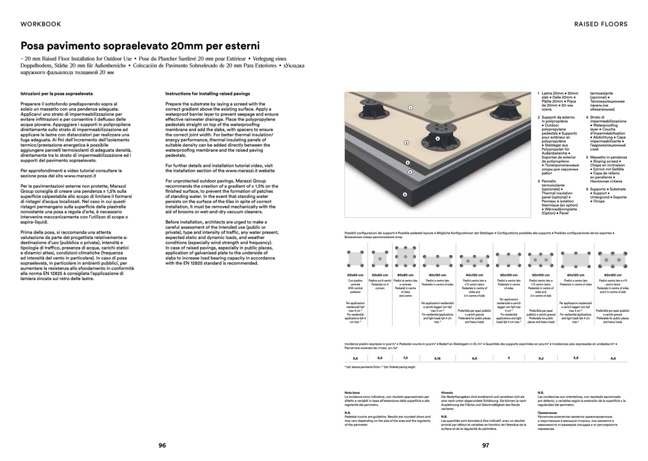 Possibili configurazioni dei supporti • Possible pedestal layouts • Mögliche Konfigurationen der Stelzlager • Configurations possibles des supports • Posibles configuraciones de los soportes •