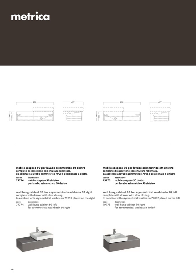 da abbinare a lavabo asimmetrico 79051 posizionato a destra
