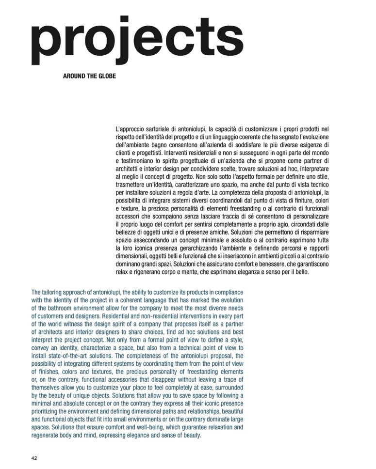 The tailoring approach of antoniolupi, the ability to customize its products in compliance