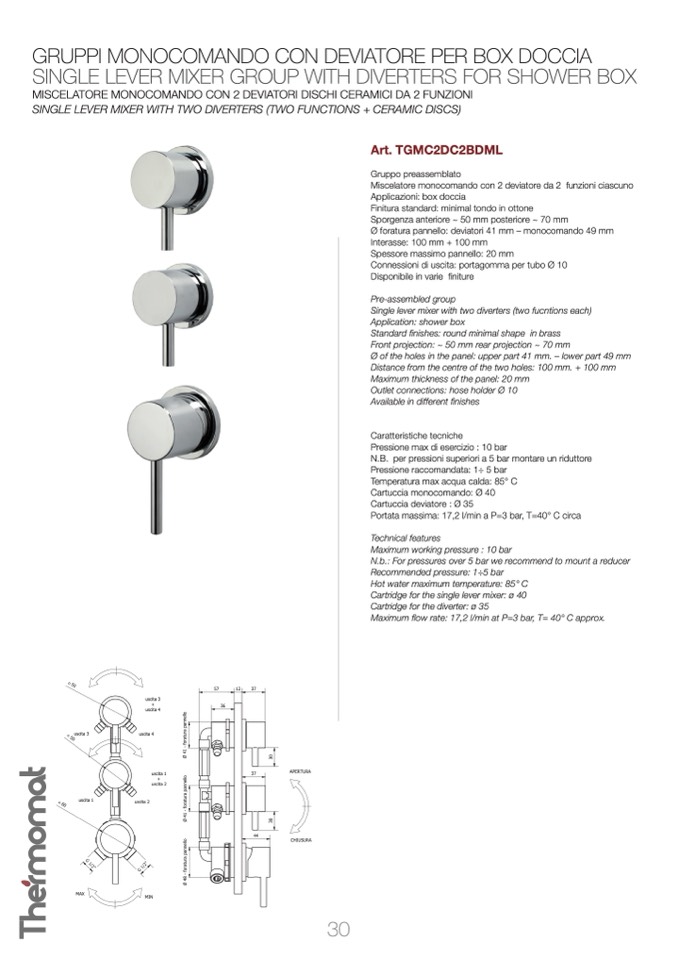 Ø foratura pannello: deviatori 41 mm – monocomando 49 mm