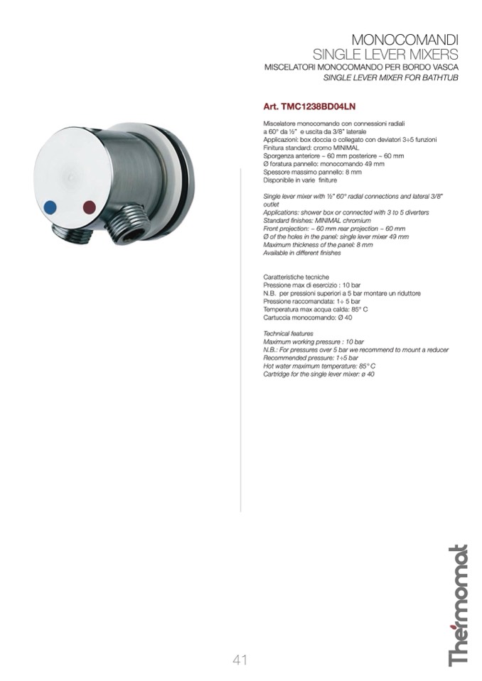 Ø foratura pannello: monocomando 49 mm