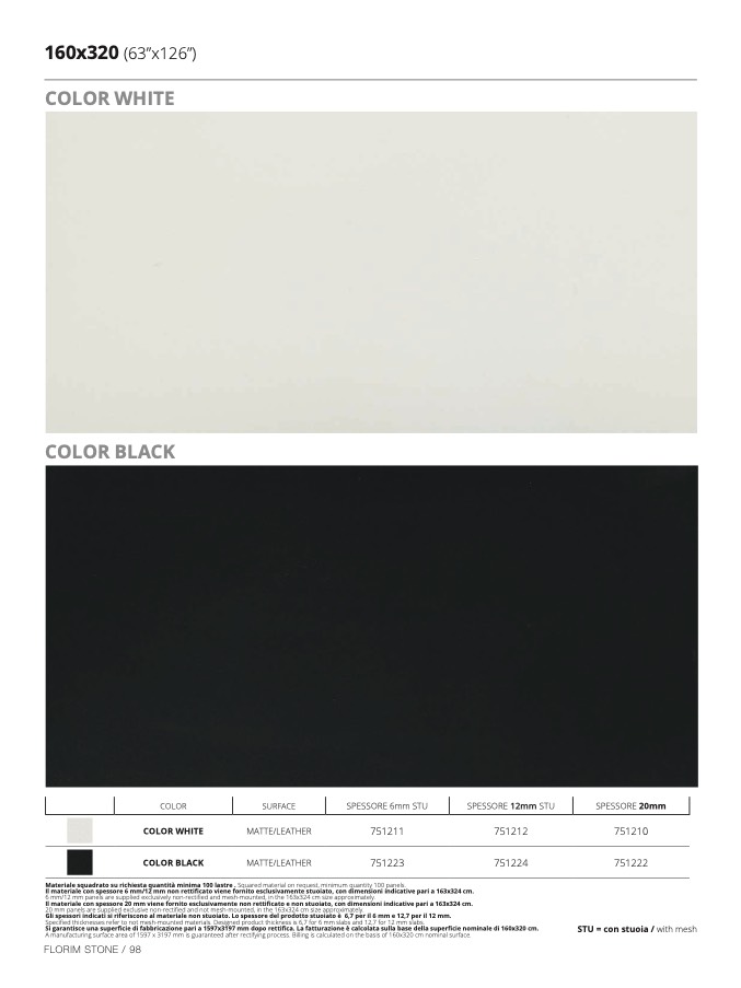 facturing surface area of 1597 x 3197 mm is guaranteed after rectifying process. Billing is calculated on the basis of 160x320 cm nominal surface