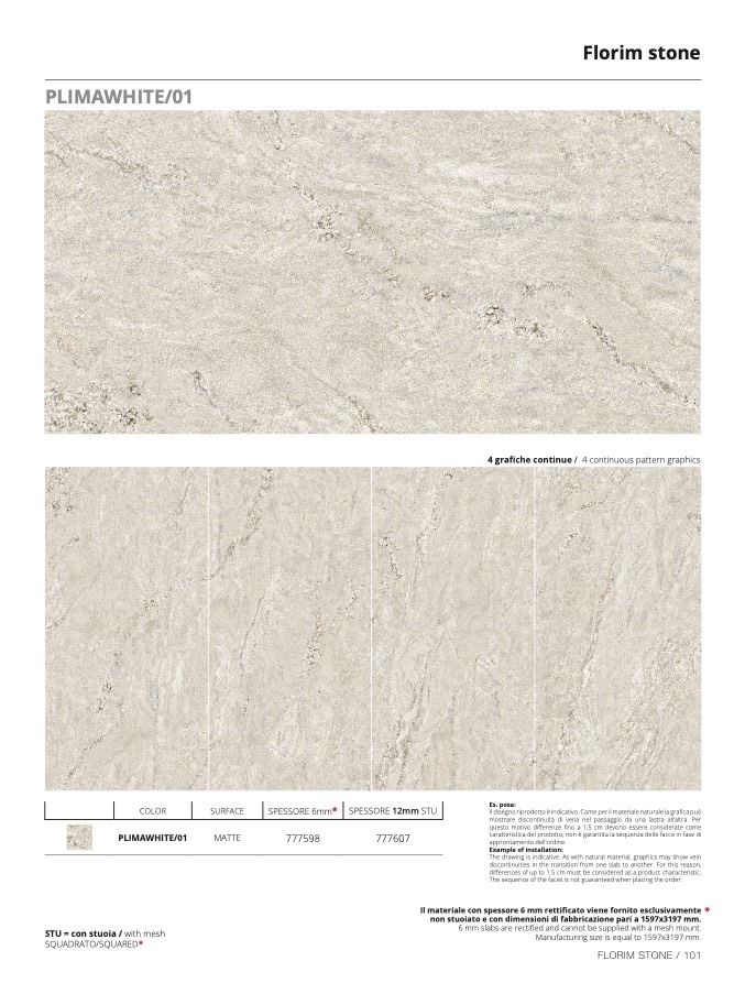 non stuoiato e con dimensioni di fabbricazione pari a 1597x3197 mm