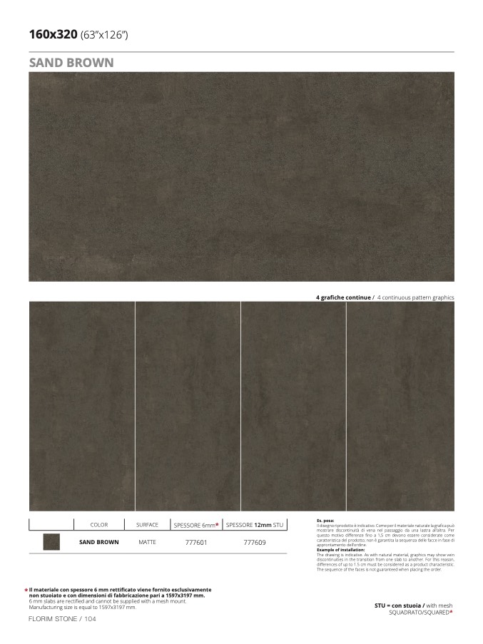 non stuoiato e con dimensioni di fabbricazione pari a 1597x3197 mm